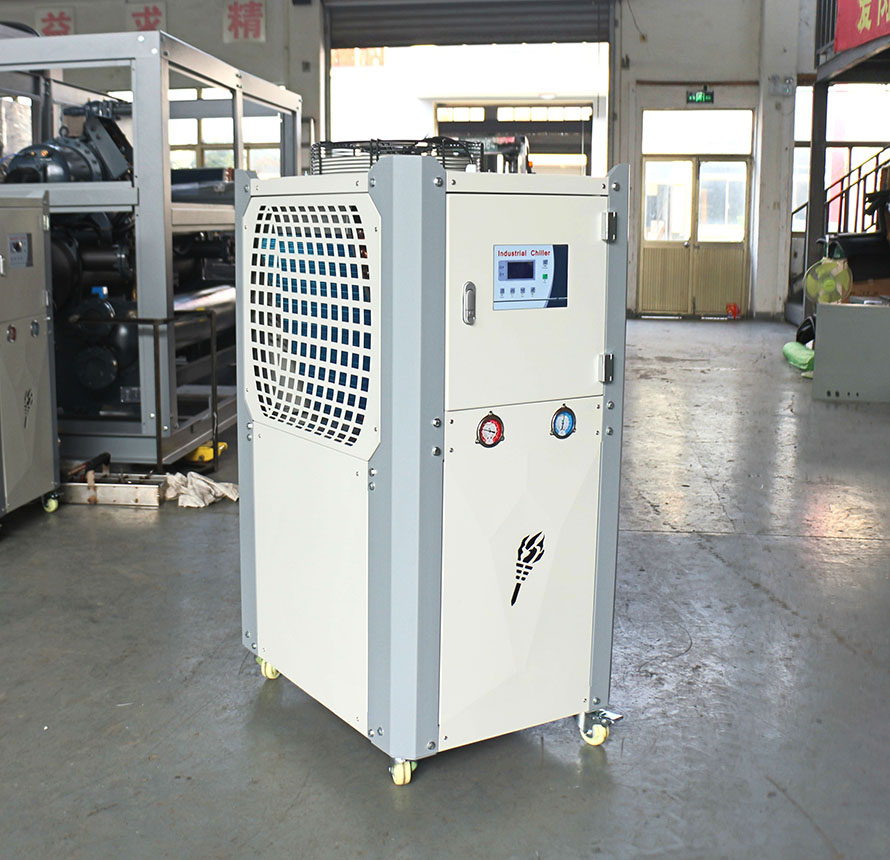 2、風(fēng)冷式發(fā)泡成型冷卻恒溫降溫用冷水機(jī),通過(guò)風(fēng)扇以空氣為冷凝方式的控溫設(shè)備,有箱式和螺桿式;