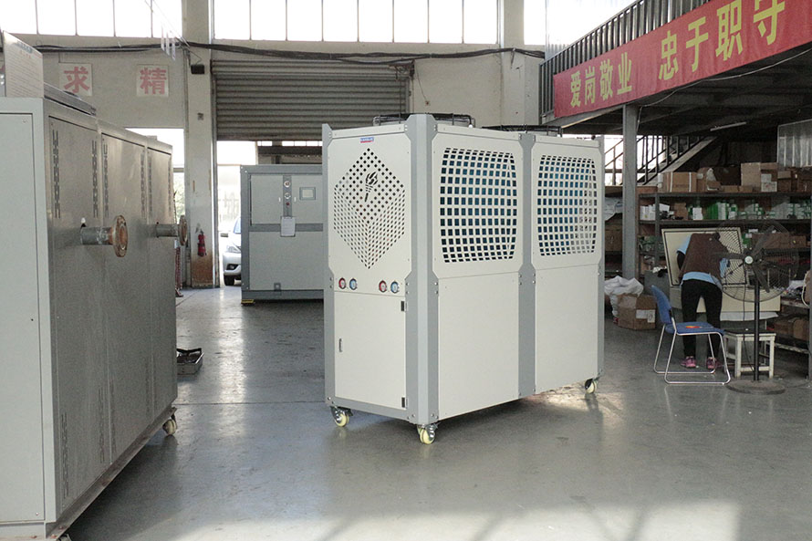 1、風冷式吹塑配套冷水機,通過風扇以空氣為冷凝方式的控溫設備,有箱式和螺桿式;