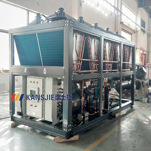 乙二醇螺桿式防爆制藥用冷水機(jī)散熱方式有二種,一種是通過(guò)風(fēng)扇以空氣為冷凝方式的風(fēng)冷式,另一種是通過(guò)冷卻塔以冷卻循環(huán)水為冷凝方式的水冷式。